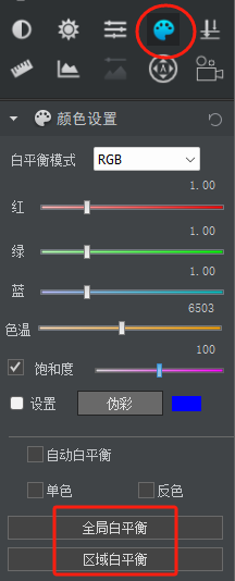 2. 點擊 “全局白平衡”,軟件將自動調整至灰白色背景(圖4)。