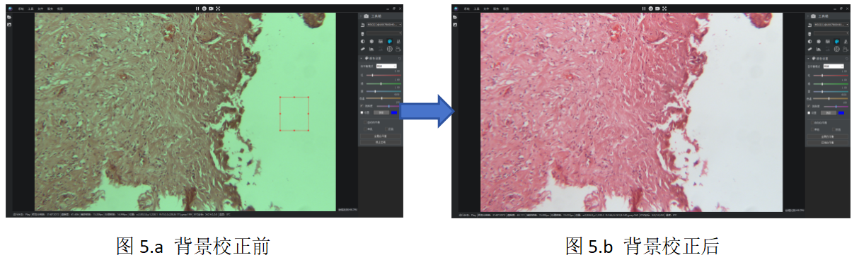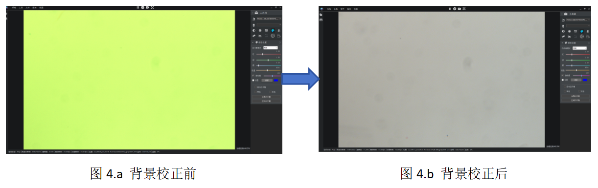 由于顯微鏡光源與相機默認設置的差異,軟件成像背景可能出現偏色(如發黃、泛藍等),如圖1所示。此類問題屬于正常現象,可通過軟件內置工具快速校正。