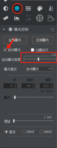 2.勾選 “自動曝光”,并將 “自動曝光亮度” 設為 80-120(數值過高易導致過曝,影響后續校正)。