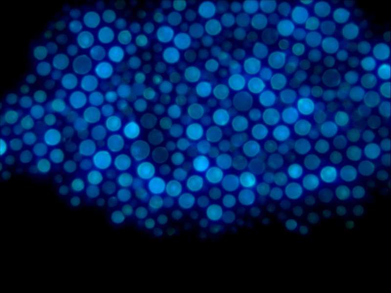 熒光染色劑可以將細菌、真菌等目標特異性染色,經過熒光顯微鏡激發觀察,目標將會呈現明亮的熒光反應,而背景和其他無關目標將呈現為暗色到純黑,即便用低倍物鏡也能快速發現這些熒光反應,從而大大提升診斷的速度和準確性。